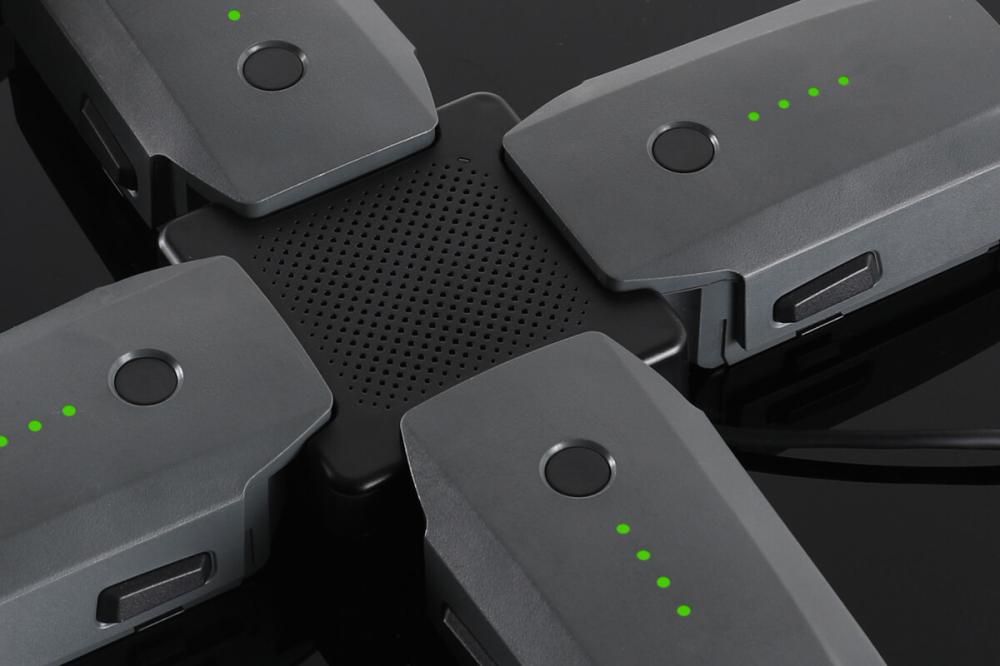 Adaptor de încărcare pentru până la patru baterii DJI Mavic PRO și Phantom 4. Bateriile inteligente vor fi încărcate în mod secvențial, în funcție de gradul de descărcare, de la cel mai mic la cel mai înalt.