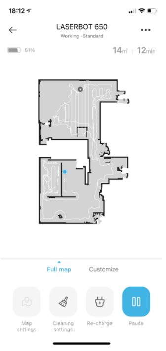 În timp real robotul scanează împrejurimile (pentru a lucra în siguranță și pentru a lucra eficient) cu ajutorul senzorilor laser. La prima pornire va pleca în descoperire (pe marginea încăperilor) pentru a-și putea crea harta de lucru. În tot acest timp va face și treabă bineînțeles. În aplicația de telefon poți vedea în timp real pe unde e prin casă și ce traseu a avut.