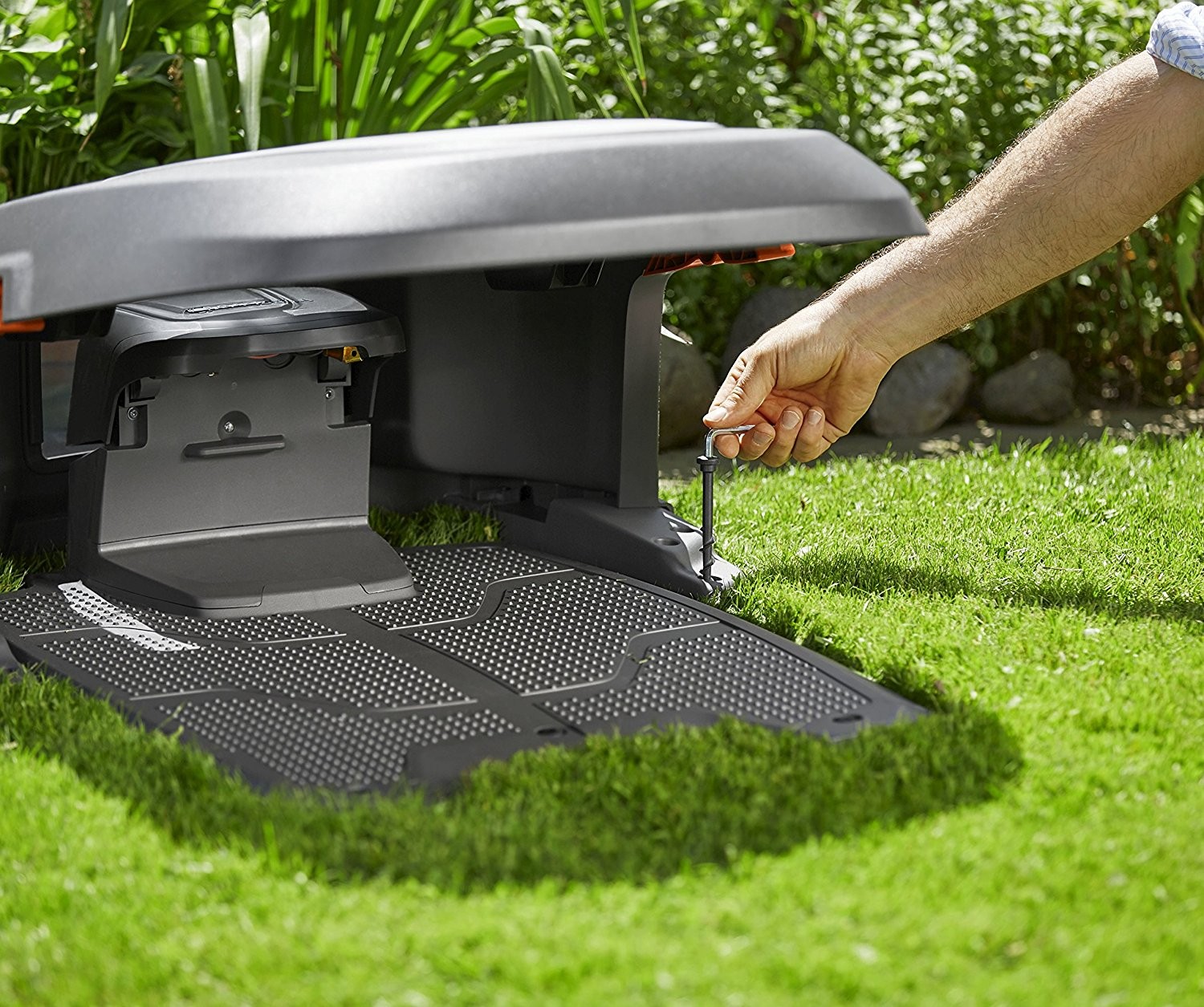 Mașina de tuns gazon robot Gardena sunt foarte solide și sunt concepute pentru a lucra în aer liber. Acest garaj bine proiectat oferă o protecție suplimentară împotriva razelor solare și a ploii.