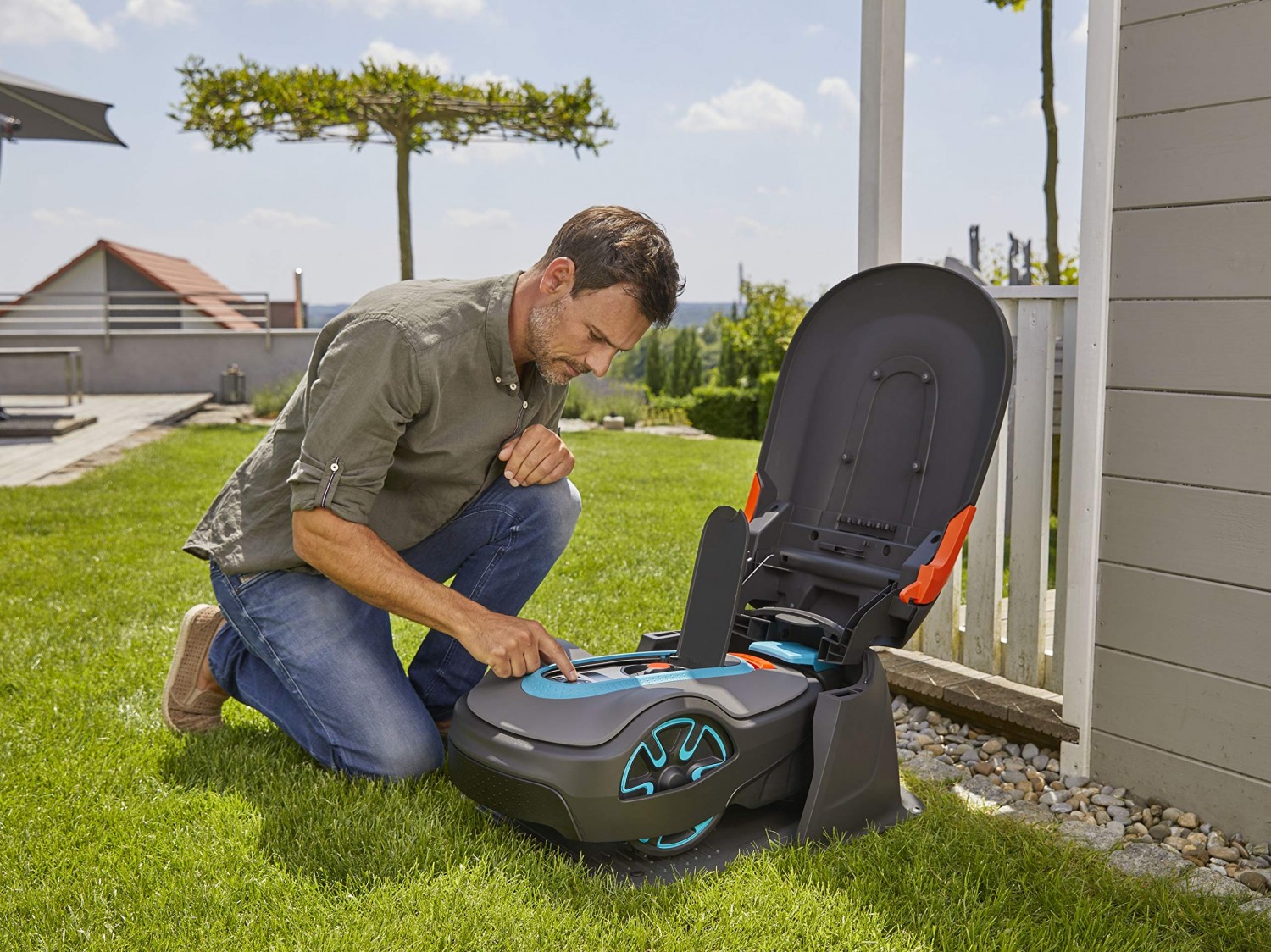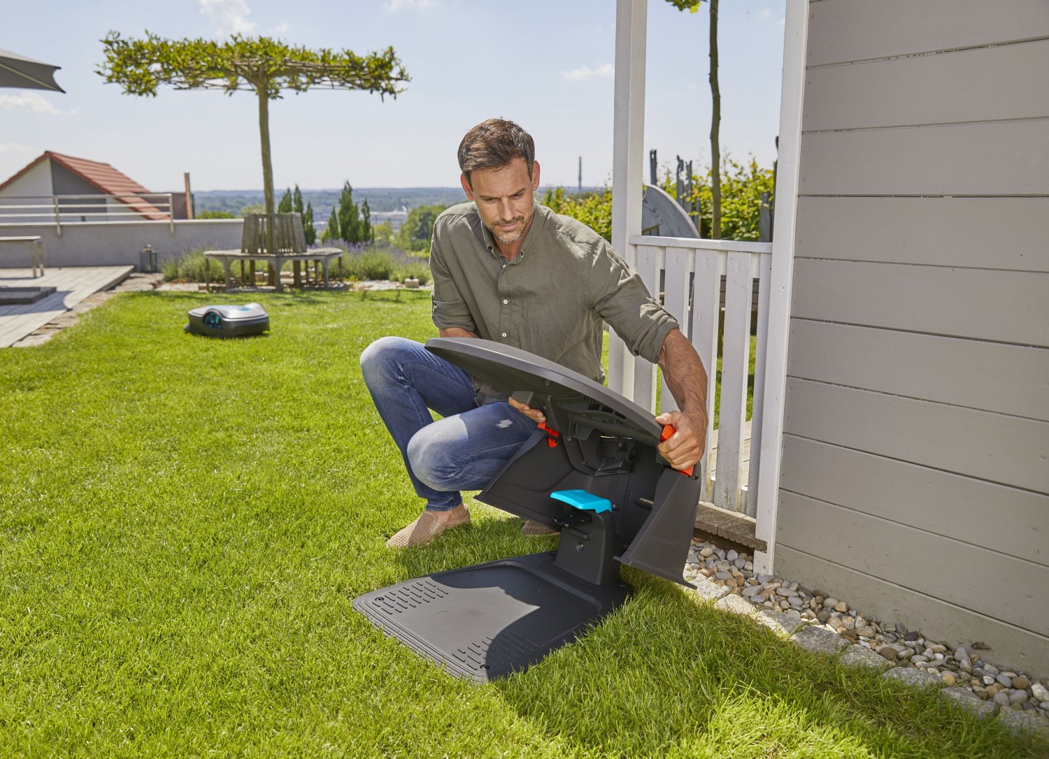 Mașina de tuns gazon robot Gardena sunt foarte solide și sunt concepute pentru a lucra în aer liber. Acest garaj bine proiectat oferă o protecție suplimentară împotriva razelor solare și a ploii.