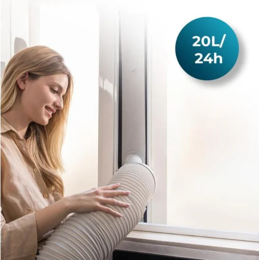 Încorporat sistem de dezumidificare poate elimina până la 20 de litri de umiditate pe zi, contribuind semnificativ la un mediu mai sănătos în casa dvs. Un furtun practic de scurgere a apei este inclus pentru a asigura funcționarea neîntreruptă. Filtru de aer în plus, acesta captează particulele mai mari din aer și contribuie astfel la îmbunătățirea calității aerului.