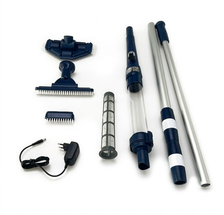 Aspiratorul fără fir are un motor de 18 W cu o capacitate de aspirare de 30 l/min și o funcție unică de pornire automată la scufundare. Pur și simplu scufundați dispozitivul în apă și aspiratorul este activat instantaneu. Bateria litiu-ion de 4000 mAh asigură până la 60 de minute de funcționare continuă, echivalentul a 20-30 de cicluri de curățare.