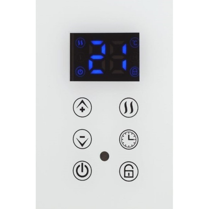 Convectorul este echipat cu un afișaj LED cu iluminare din spate, unde puteți seta temperatura dorită, pe care convectorul o va menține automat.