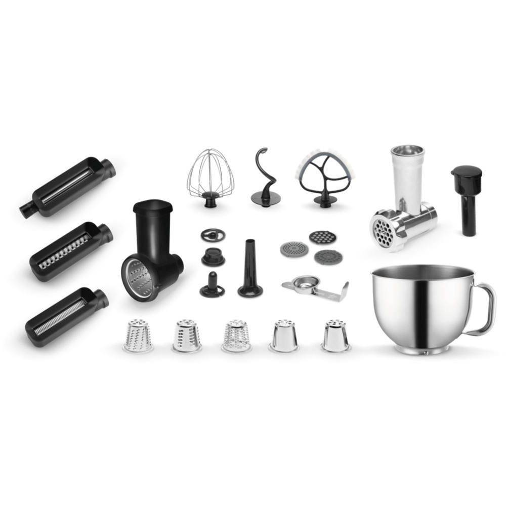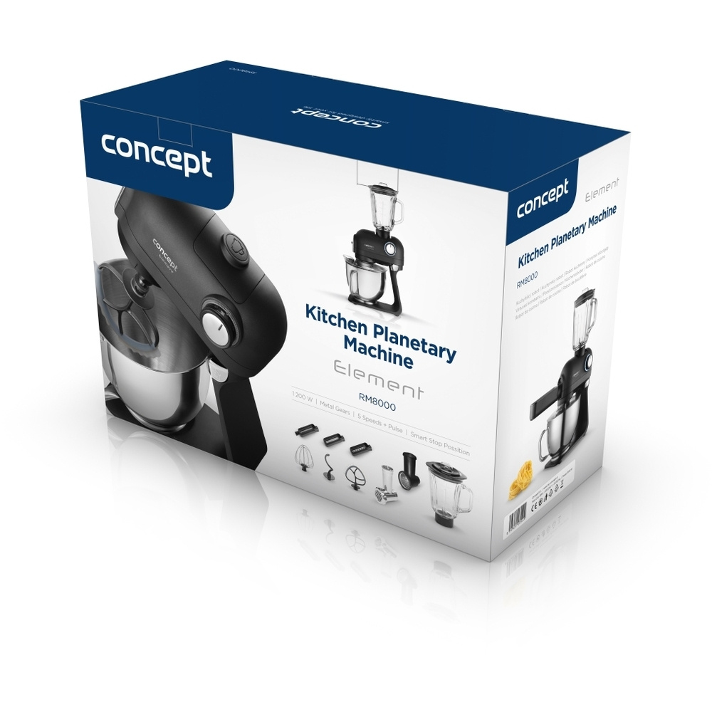 Procesor de alimente ELEMENT în negru elegant nu este doar un accesoriu elegant, ci și un ajutor neobosit care vă scutește de o mulțime de muncă. Se poate ocupa de frământarea aluatului, creme de bătut, frișcă și albușuri de ou, dar nu se oprește aici - ea poate amesteca, râșni, măcina carnea, umple cârnați și cârnați, face dulciuri de casă și paste proaspete datorită atașamente pentru fabricarea pastei. Toate acestea într-un design compact care economisește spațiu pe blat și înlocuiește mai multe aparate separate. Un aparat, o mulțime de funcții, mai puțină bătaie de cap. Proiectat inteligent pentru fiecare gospodărie!
