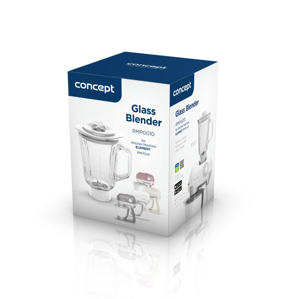 Blenderul din sticlă Concept RMP0010 de 1,5 L este complet compatibil cu procesoarele de alimente planetare Concept RM8000, RM8010, RM7000, RM7010, RM7020, RM7030, RM7500 și RM7510.