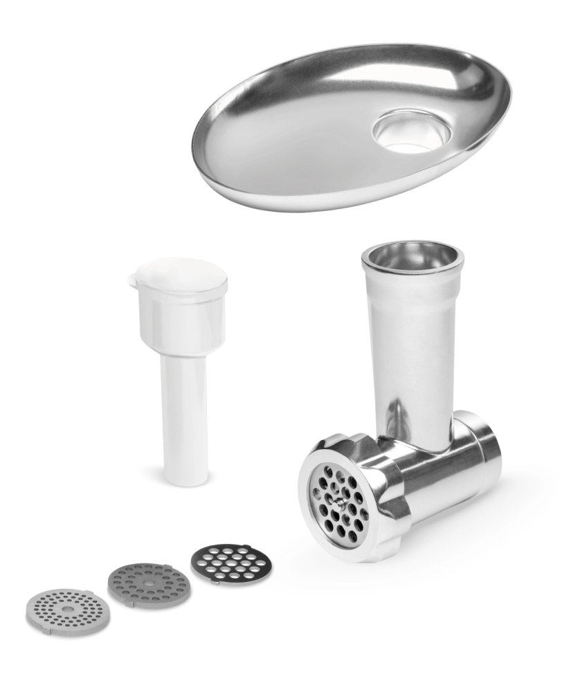 Doriți burgeri de casă, chevabcici sau lasagne? Accesoriile interschimbabile pentru măcinarea cărnii, cu trei orificii de dimensiuni diferite, vă permit să măcinați carnea după cum doriți. Sita groasă este potrivită pentru prepararea amestecului de chiftele, sita medie pentru chiftele sau chiftele. Sita cu cele mai mari găuri poate fi utilizată, de exemplu, pentru a prepara amestec de cârnați.