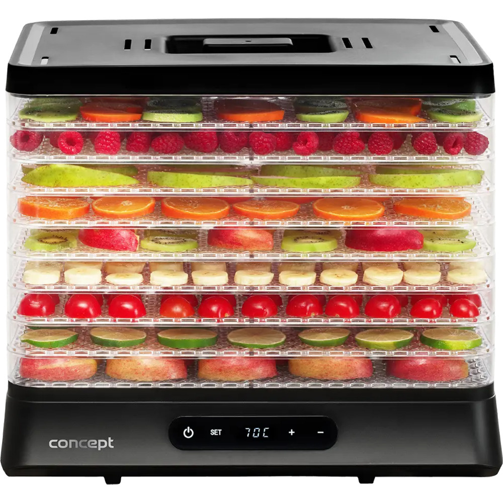Uscătorul SO2042 cu 500 W poate gestiona cu ușurință chiar și culturile mai mari. Datorită 9 plăci de uscare transparente oferă suficient spațiu pentru uscarea alimentelor pe tot parcursul anului. Pur și simplu tăiați-le, întindeți-le uniform, setați temperatura dorită și porniți. Uscătorul face restul pentru dvs. Ventilatorul integrat cu orificii de ventilație special concepute asigură uscare uniformă pe toate podeleleastfel încât culturile dvs. vor fi perfect uscate.