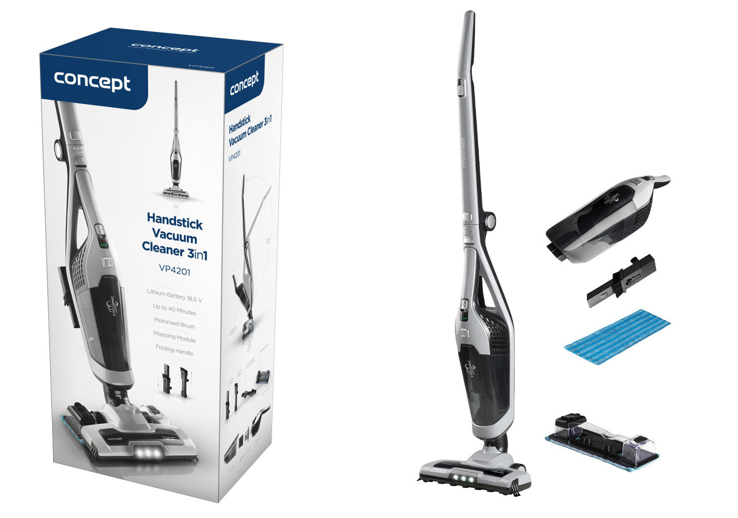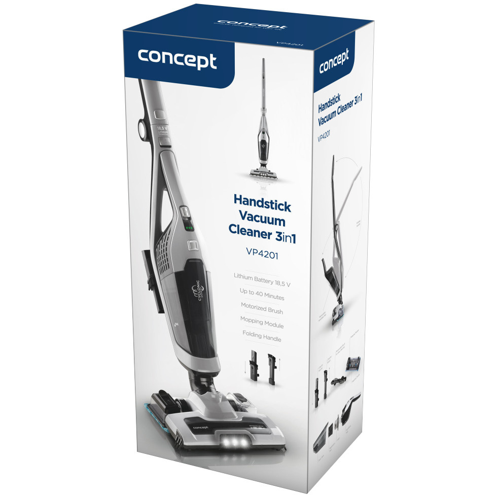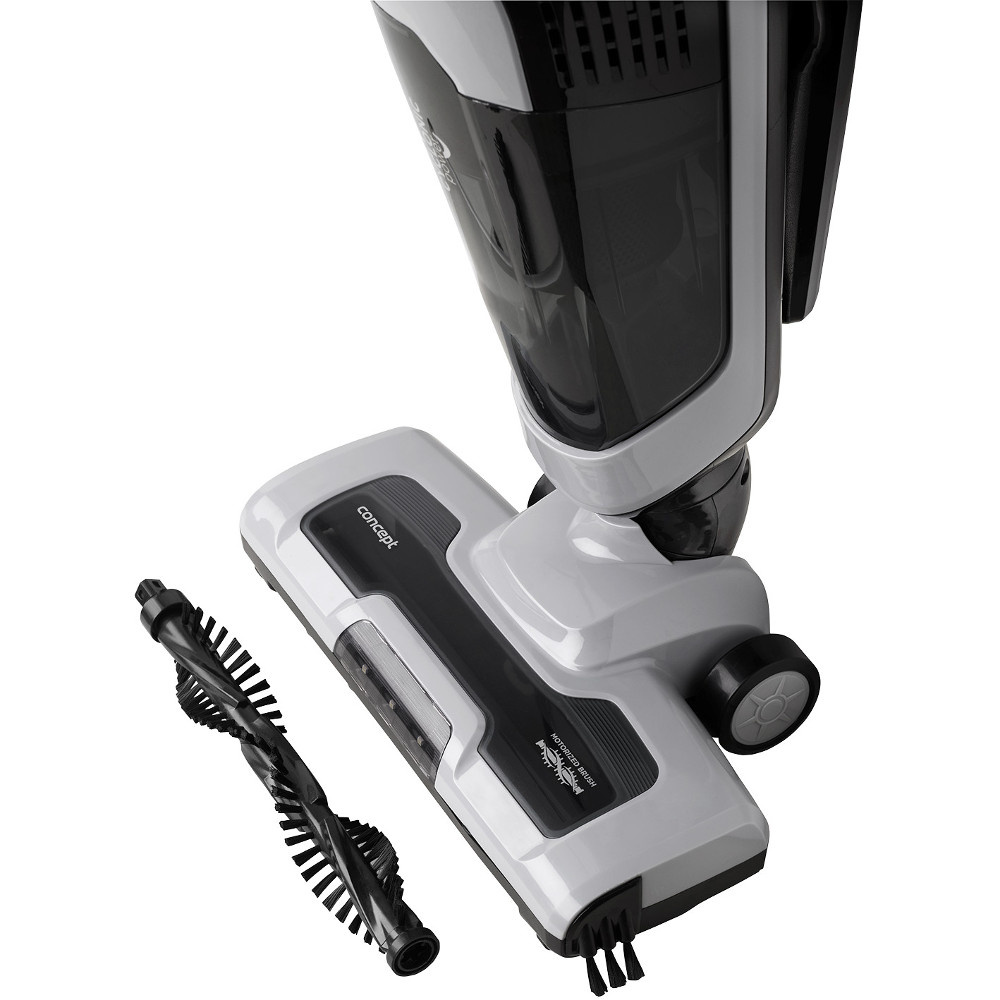 Aspiratorul vertical Concept VP4201 cu mop vă facilitează curățarea pe pardoseli dure și covoare. Aspiratorul este echipat cu o perie turbo motorizată și durează până la 40 de minute cu o singură încărcare. Datorită sistemului de filtrare a ciclonului, obțineți și o putere de aspirație constantă.