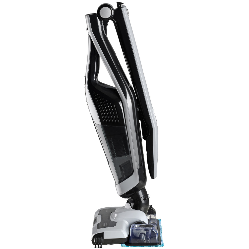 Ștergerea nu a fost niciodată mai ușoară. Tot ce trebuie să faceți este să umpleți rezervorul de 150 ml cu apă, să puneți o țesătură mop și să o atașați la aspirator printr-o mișcare simplă. Umeziți mopul apăsând ușor butonul de pe rezervor și puteți începe să ștergeți și să aspirați în același timp.