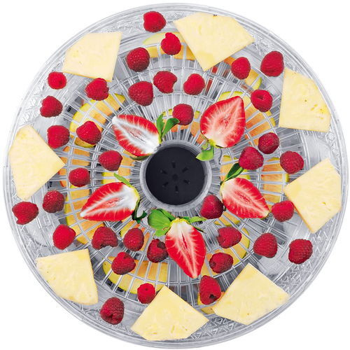 Pentru a asigura rezultate perfecte, uscătorul este echipat cu ventilator integratcare asigură circulația uniformă a aerului pe toate etajele. Există 9 salarii transparente cu un diametru de 32 cm și grile de formă specială care favorizează fluxul optim de aer. Datorită acestui design inteligent, obțineți o uscare uniformă a tuturor ingredientelor, fie că uscați ciuperci, fructe sau preparați delicatese RAW. În plus, designul transparent al platoului facilitează verificarea procesului de uscare.