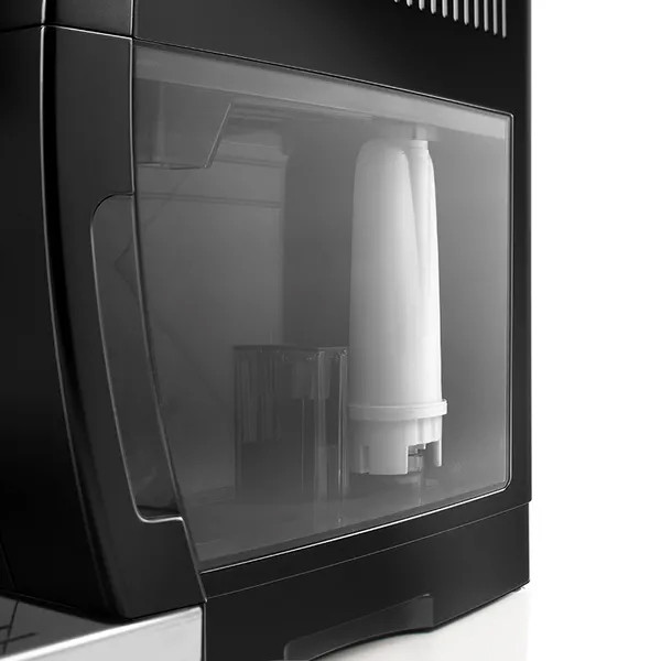 O caracteristică specifică a aparatelor de cafea De'Longhi este capacitatea de a programa duritatea apei folosite. Există 4 grade de duritate din care puteți alege. De asemenea, se recomandă utilizarea unui filtru de apă. Acest lucru nu numai că previne formarea de calcar în dispozitiv, dar îi prelungește și durata de viață. De asemenea, afectează gustul și aroma cafelei.