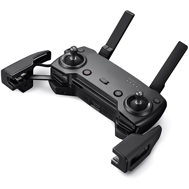 Radiocomanda dedicată folosește o construcție pliabilă, cu profil redus și ergonomică pentru un confort maxim la fixare și ținere a unui telefon inteligent. Manetele de control detașabile pot fi depozitate în interiorul radiocomenzii pentru o transportare mai confortabilă.