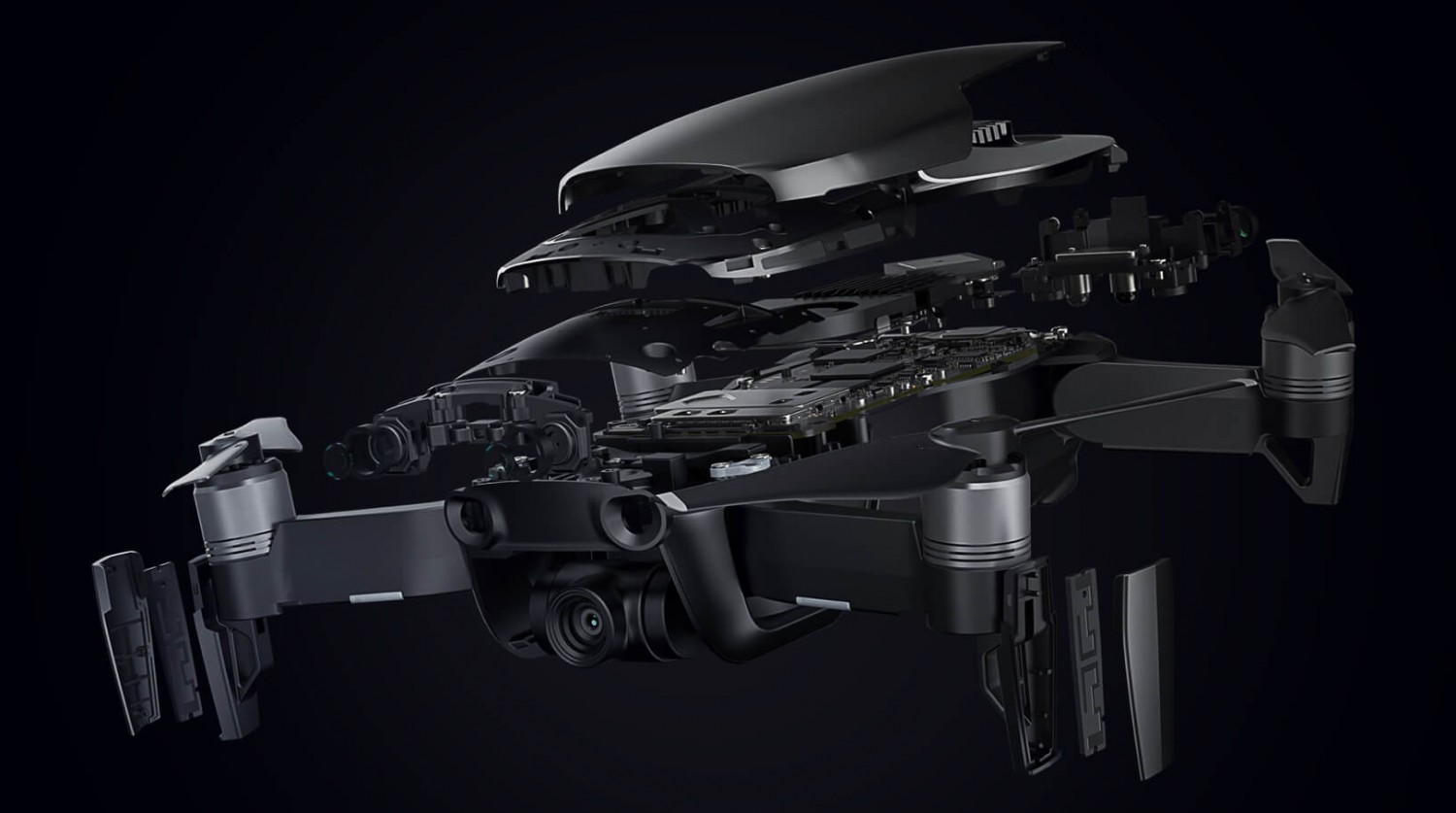 Umeri dronei Mavic Air se îmbină cu corpul aerodinamic exprimând exactitatea geometrică a dronei. Inserțiile din aliaj de magneziu protejează șapte camere de bord, orificiile de aerisire înlătură în mod eficient căldura, iar camera primară cu un gimbal stabilizator este încorporat și mai bine protejat. Mavic Air este la fel de înalt și lat ca un telefon inteligent, este la fel de ușor de transportat, împingând limitele dronei de această dimensiune.