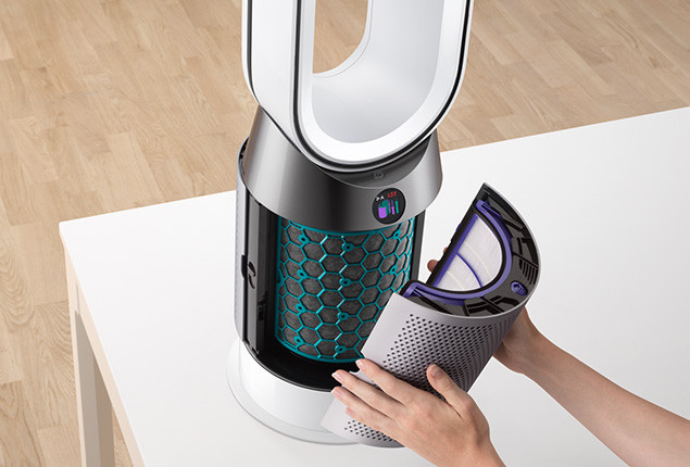 Nu există grile sau pale ale ventilatorului care ar fi dificil de curățat. Corpul minimalist și elegant al Dyson Pure Hot + Cool HP04 este ușor de șters cu o cârpă uscată. Filtrele necesită o întreținere minimă și sunt ușor de schimbat. Funcția integrată vă informează direct când filtrul trebuie înlocuit.