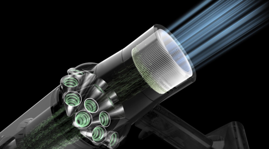 Tehnologia ciclonului, 14 Ciclone împreună cu filtrul HEPA captează părul, praful, alergenii și murdăria, contribuind astfel la un aer mai curat. Filtrarea absoarbe particulele până la PM 0,3, curățănd aproximativ 99% din aer.