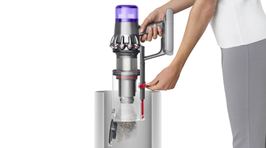 Dyson V11 Motorhead este echipat cu un mecanism inovator pentru containerul de deșeuri, care asigură golirea rapidă și igienică a acestuia, fără contact cu murdăria. Prin simpla apăsare a unui buton, puteți goli cu ușurință conținutul buncărului Dyson V11 direct în coșul de gunoi.