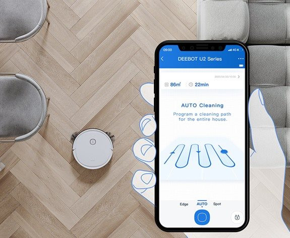 Cu ECOVACS, puteți programa cu ușurință un timp de curățare și puteți selecta modul adecvat pentru acesta, puteți monitoriza starea de curățare și vă puteți bucura de confortul lucrărilor casnice automate.