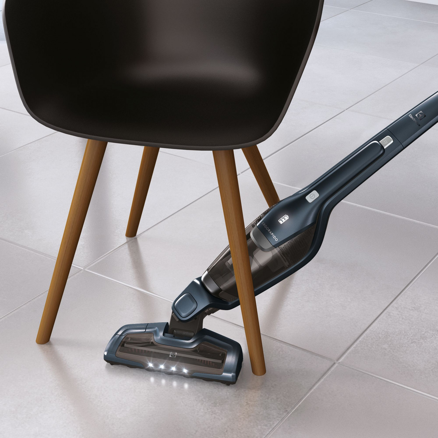 Aspiratorul multifuncțional vertical 2in1 cu opțiunea de a scoate aspiratorul de mână oferă o soluție rapidă și ușoară pentru curățarea zilnică. În plus, este potrivit pentru toate tipurile de suprafețe. Baza de încărcare pentru depozitarea practică a aspiratorului este dotată cu un suport pentru accesorii integrat. Electrolux EER75STM utilizează tehnologia de auto-curățare BrushRollClean pentru a îndepărta părul și fibrele din peria aspiratorului prin simpla apăsare a unei pedale. Capul aspiratorului poate fi rotit în intervalul de 180 ° și astfel permite aspirarea în locuri greu accesibile. Motorul puternic este completat de o perie rotativă electrică și o serie de accesorii de perii, inclusiv o mini duză cu o perie rotativă cu motor.