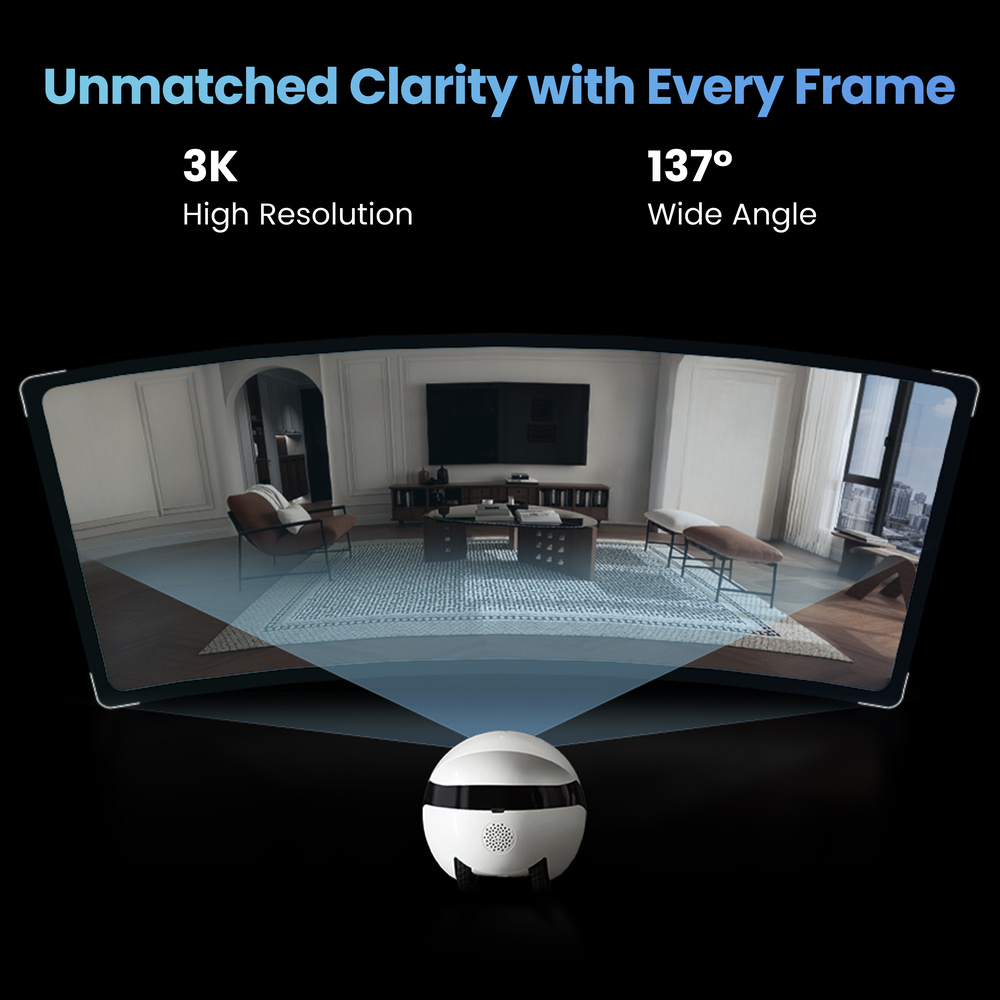 Camera 3K încorporată cu rezoluție 2880 x 1620 oferă o imagine extrem de detaliată care surprinde totul, de la mișcări subtile la expresii faciale. O lentilă cu unghi larg de 137° asigură că nimic nu scapă din câmpul dvs. vizual, chiar și atunci când supravegheați o cameră mai mare. Urmărirea inteligentă AI poate detecta mișcarea, se blochează automat și înregistrează un videoclip sau o fotografie. În combinație cu mișcarea lină a camerei, EBO Air 2 Plus oferă un standard complet nou în monitorizarea locuinței. Fiecare videoclip (format MP4) și fotografie(JPG) este clară, realistă și ideală pentru transmiterea instantanee sau redarea ulterioară pe cardul microSD de 32 GB încorporat, care poate fi extins până la 256 GB.