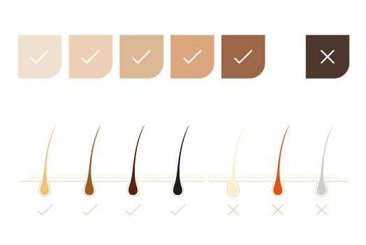 Epilarea cu epilatorul IPL este cea mai eficientă pentru persoanele cu pielea deschisă la culoare și părul mai închis la culoare care conțin pigment închis la culoare și, prin urmare, epilarea este mai eficientă. Cu cât firele de păr sunt mai deschise și mai întunecate tipul de piele, cu atât eficiența epilatorului IPL este mai scăzută.