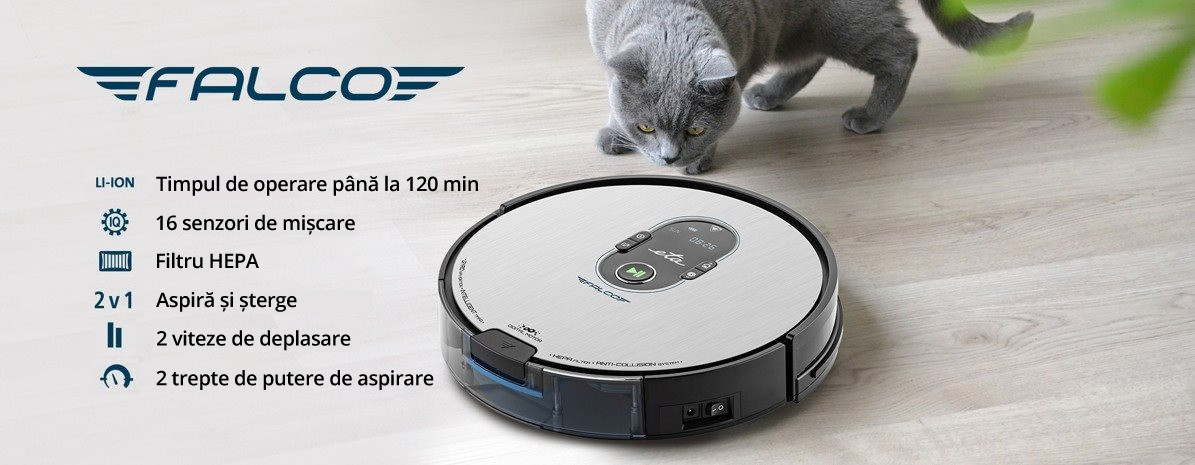 Aspiratorul robot ETA Falco are atât funcția de aspirare cât și funcția mop. Datorită rezervorului de apă, care menține țesutul mop umed la ștergere, poate curăța și suprafața podelei. Toate funcțiile sunt ușor de utilizat, inclusiv înlocuirea periei principale și a bateriei. Puteți înlocui peria fără a fi nevoie de unelte suplimentare. Navigarea giroscopică permite orientarea excelentă a aspiratorului în spațiu, selectarea traseului optim și o eficiență maximă de curățare. În plus, filtrarea triplă captează chiar și cele mai mici particule de praf și murdărie.