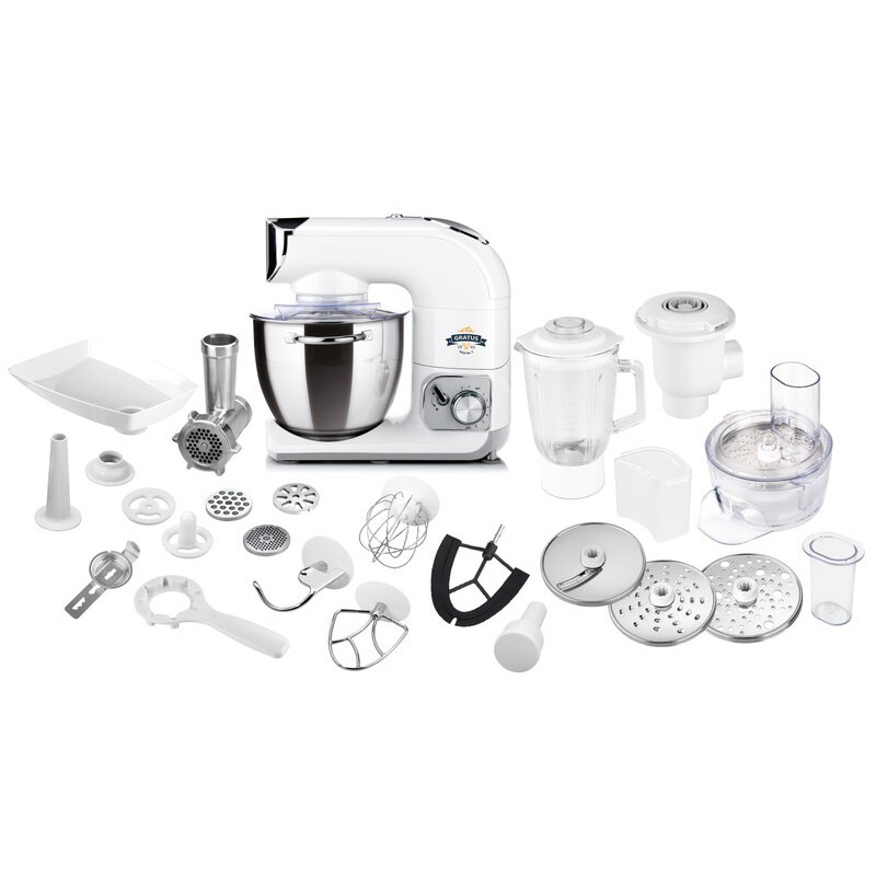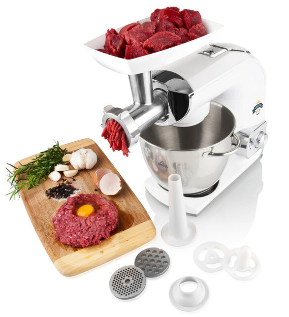Robotul Gratus Max III este, de asemenea, un adevărat expert în prepararea cărnii tocate. Datorită propriului tăietor, veți ști întotdeauna exact ce carne ați ales pentru măcinare și veți mânca preparate preparate din el cu un gust mult mai mare. În plus, puteți alege între patru grosimi diferite de măcinare și puteți pregăti carnea exact conform ideilor dvs. Un alt avantaj pentru iubitorii de carne este posibilitatea de a umple cârnați de casă sau de a face conuri de carne Kebbe.