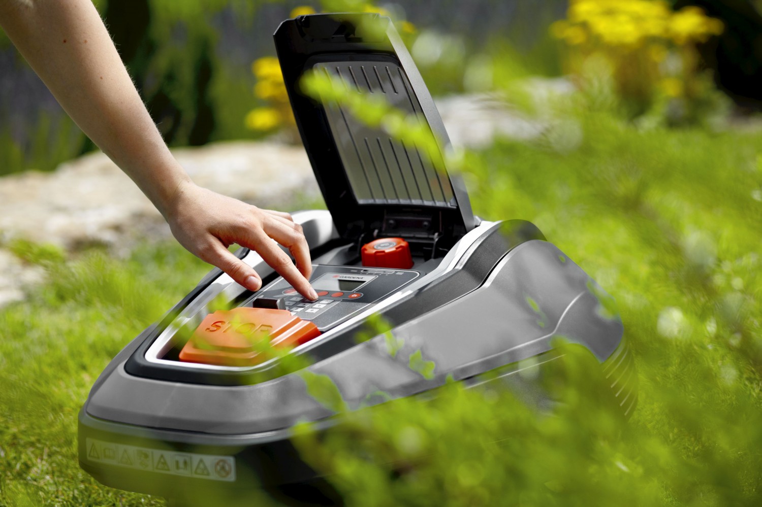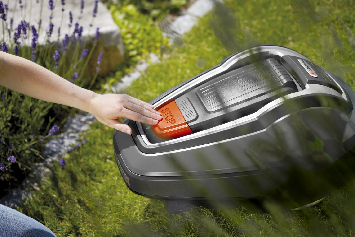 Senzorii pentru înclinaţie, ridicare și distanța lungă dintre corpul maşini și lame asigură siguranță suplimentară pentru oameni și animale. De exemplu, atunci când cositoarea este ridicată, discul de lamă se oprește imediat pentru a preveni rănirea. Mașina de tuns iarba robotizată poate fi oprită oricând cu un buton de oprire mare, ușor accesibil.