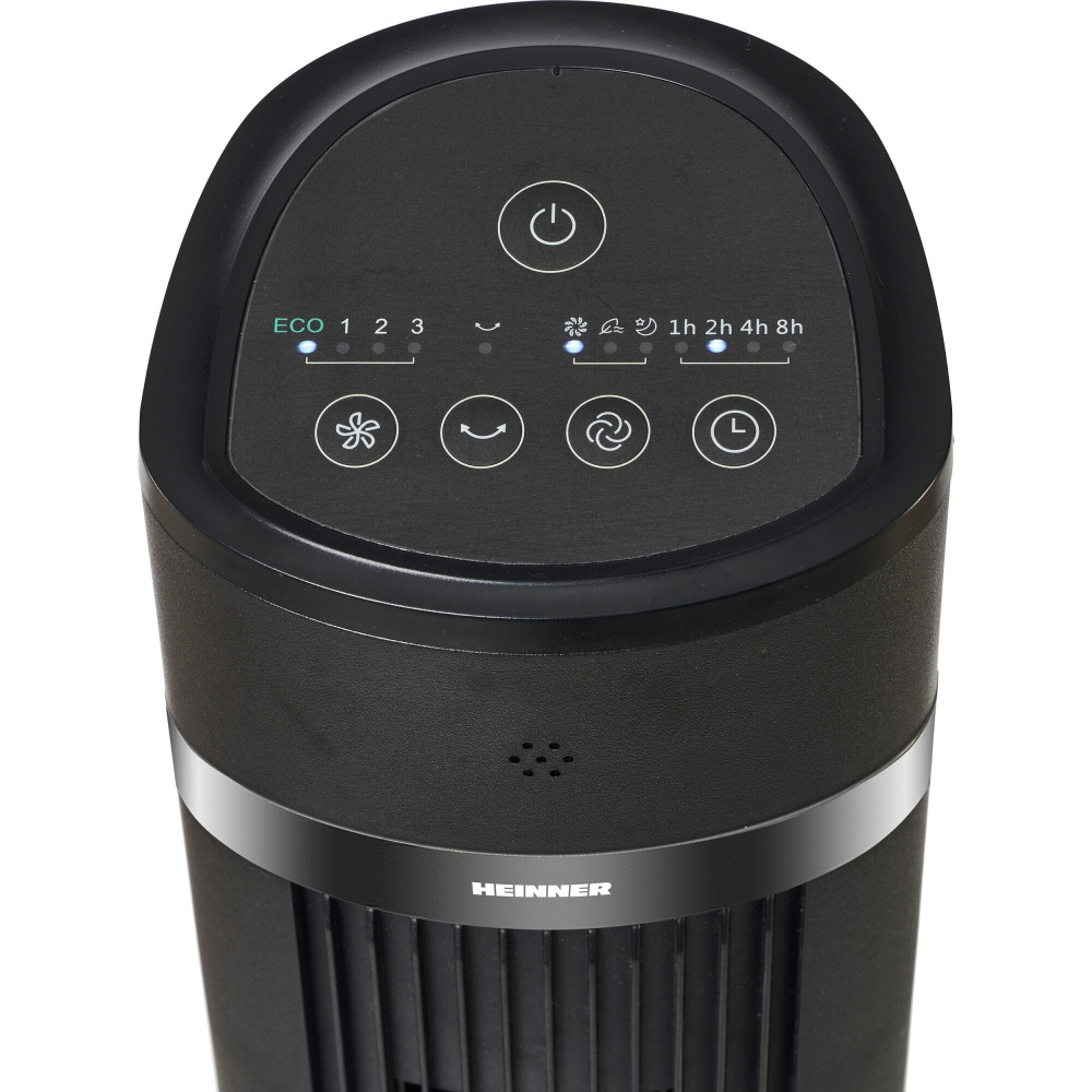 Ventilatorul este echipat cu un panou de control sensibil la atingere care permite reglarea ușoară a tuturor funcțiilor. O telecomandă este inclusă pentru un confort sporit. Cu ambele, puteți comuta cu ușurință între moduri, regla viteza de ventilație sau activa funcția de oscilație pentru o distribuție uniformă a aerului în cameră.