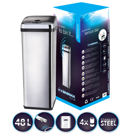 Coșurile de gunoi fără contact HiMAXX, cu senzor infraroșu, sunt proiectate pentru o utilizare ușoară și igienică. Când așezați mâna sau obiectul la 15-20 cm deasupra senzorului infraroșu al coșului, capacul se deschide automat într-o fracțiune de secundă și după introducerea deșeurilor, capacul se închide automat.