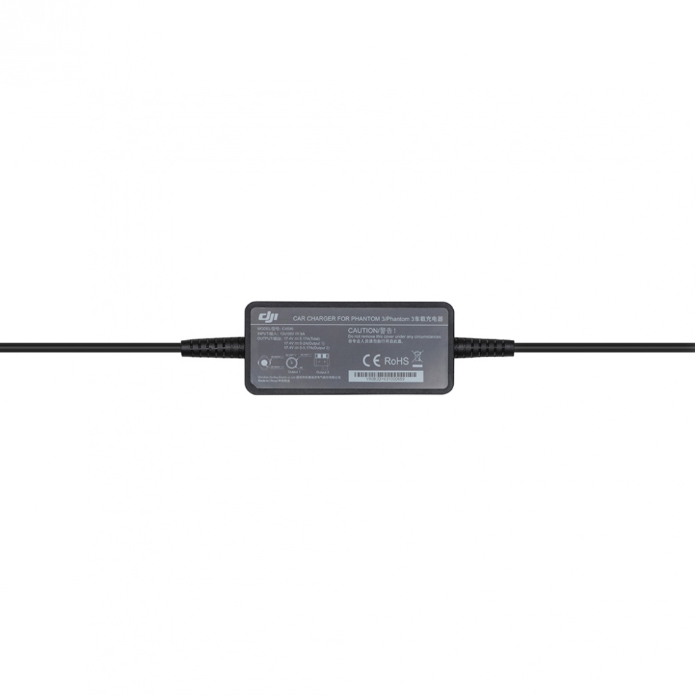 Încărcătorul auto pentru modelul de drona DJI Phantom 3 este folosit pentru a încărca bateria și telecomanda prin intermediul unei brichete pentru țigări. Adaptorul de încărcare cu autoreglare este echipat cu protecție împotriva tensiunii scăzute a bateriei sau supraîncălzirea bateriei reîncărcabile. Dacă portul brichetei ar depăși o anumită temperatură, încărcarea bateriei va fi întreruptă.