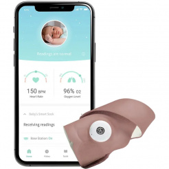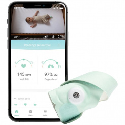 - Pentru bebeluși de la 0 la 18 luni, Încărcare rapidă wireless, Autonomie de până la 16 ore, Monitorizează ritmul cardiac și nivelul de oxigen, În conținutul pachetului 4 șosete