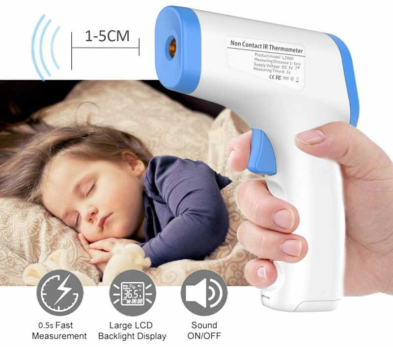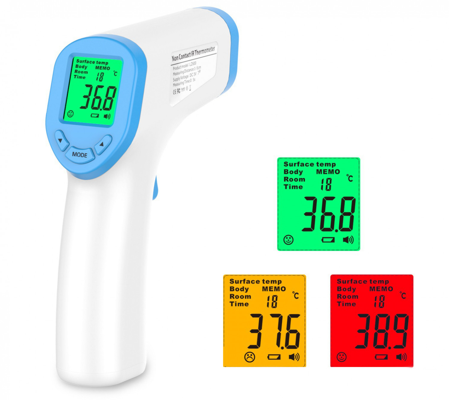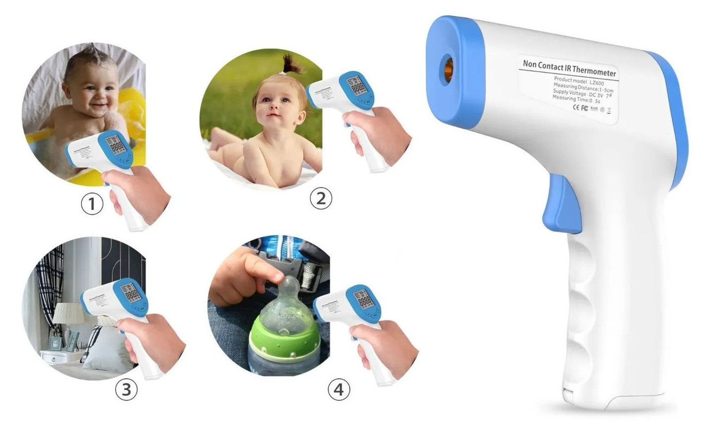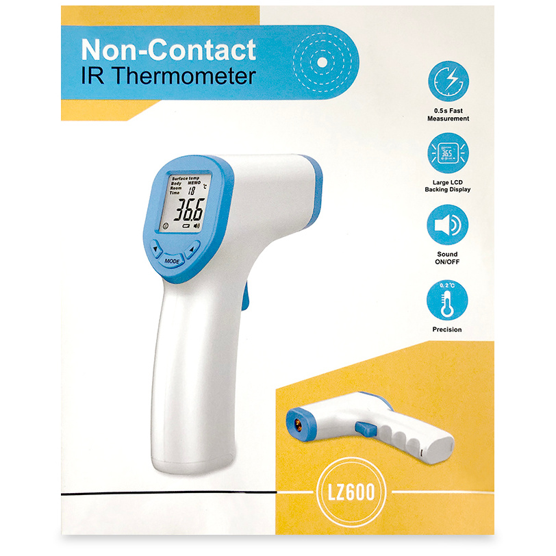 Termometru cu infraroșu fără contact potrivit pentru întreaga familie, mai ales unde sunt copii. Termometrul măsoară temperatura corpului, precum și temperatura mediului și a suprafețelor (de exemplu, măsurarea temperaturii apei pentru bebeluși sau a sticlelor cu o băutură). LZ600 este precis și rapid, aveți rezultatul într-o secundă. Termometrul permite măsurarea confortabilă în somn fără a trezi copilul. Afișajul LCD este mare și iluminat din spate și are o alarmă color care indică valori crescute.