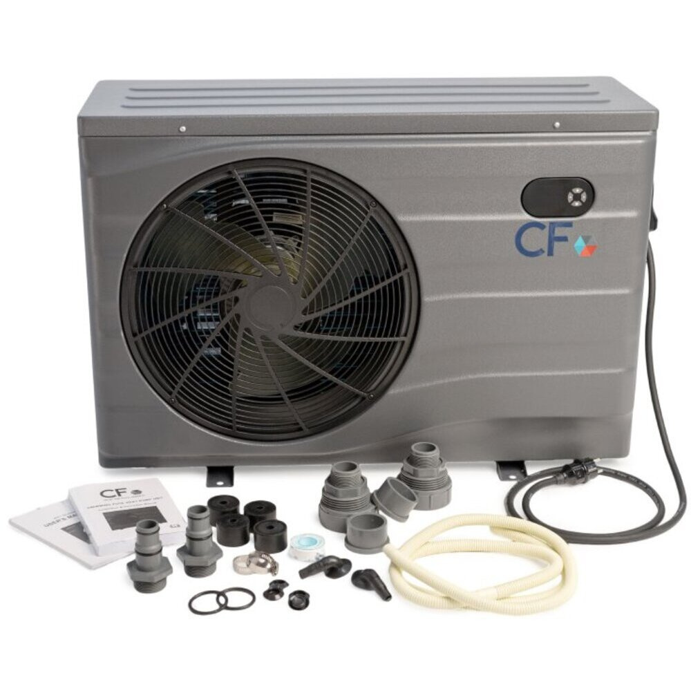 Pompa de căldură este pregătită pentru conectarea la furtunurile de piscină ø38/32 mm sau la țevile ø50 mm. Pachetul conține toate componentele necesare, inclusiv conectori de ambele dimensiuni, picioare de cauciuc de amortizare, cleme pentru furtun, bandă de teflon și kit de evacuare a condensului. Dispozitivul funcționează fiabil la temperaturi ambientale de la -7 la 43°C și reglează temperatura apei între 9 și 40°C. Debitul de apă recomandat este de 3,2 m³/h, iar sursa de alimentare necesită o conexiune monofazată de 220-240 V / 50 Hz. Poate fi utilizat pentru apă tratată cu clor și apă salinizată.