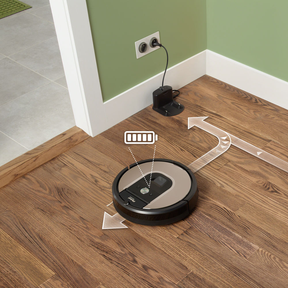 Bateria performantă cu litiu permite robotului iRobot Roomba 966 să curețe până la 185 mp cu o singură încărcare. Dacă este necesar, Roomba se va întoarce pentru câteva minute la stația de încărcare, se reîncarcă, și continuă curățarea exact de unde s-a oprit, până când își termină treaba.
