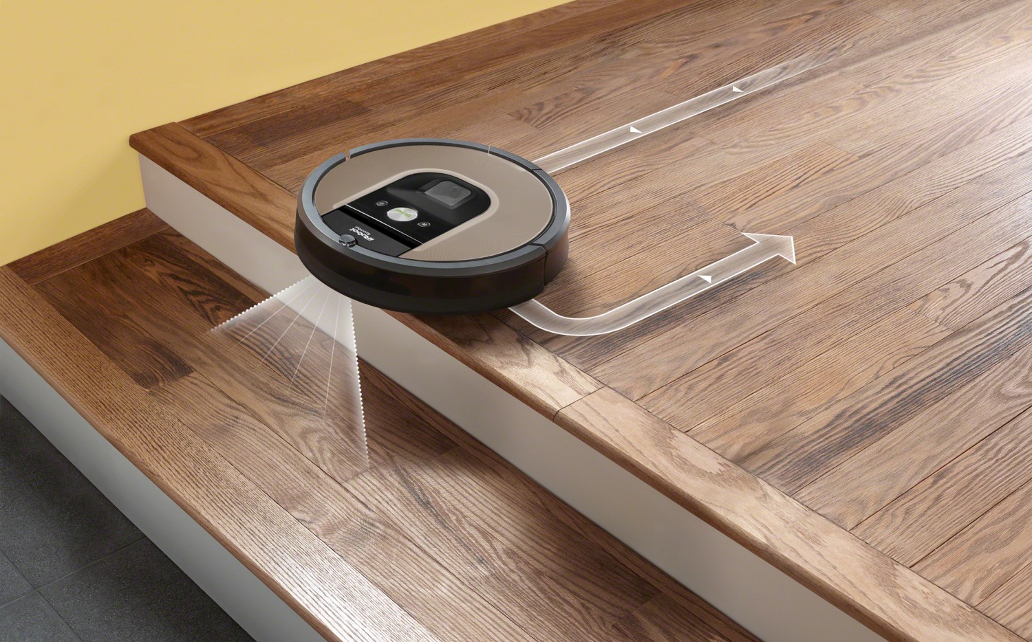 Senzorii speciali sunt plasați în partea de jos a robotului și prin ei poate recunoaște din timp spațiul liber de dedesubt, eliminând astfel, posibilitatea de a cădea. Roomba 966 se oprește, se întoarce, și continuă curățarea pe podea.