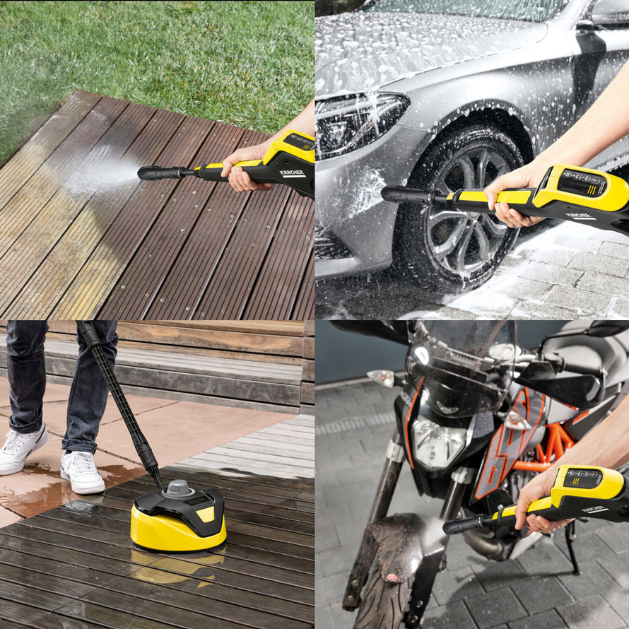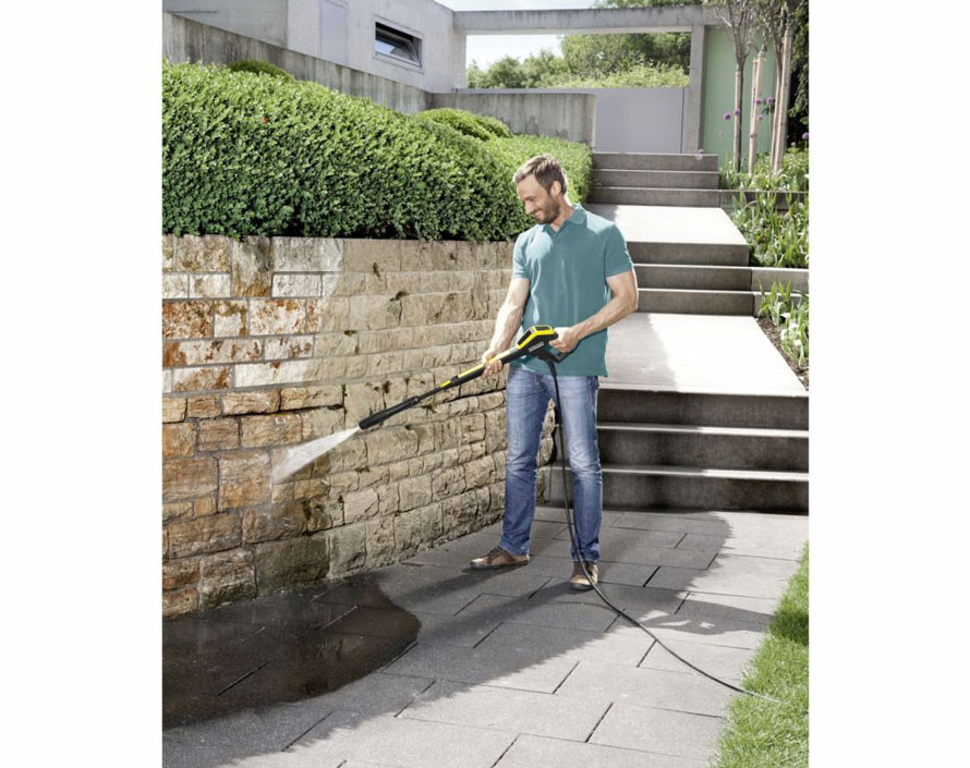 Kärcher K 4 Power Control Home este potrivit pentru curățarea diferitelor suprafețe de la pereți de piatră prin plăci până la verande din lemn. Aplicația Acasă și grădină vă va sfătui cu privire la presiunea care este potrivită pentru diferite suprafețe și puteți pur și simplu seta presiunea pe accesoriul Vario power Jet și puteți verifica pistolul de înaltă presiune G 160 Q Power Control. Alte caracteristici includ sistemul de curățare Kärcher Plug ‘n’ Clean, mânerul telescopic și poziția de parcare. Kitul Home include un produs de curățare a suprafețelor T5 și un produs de curățat pietre.
