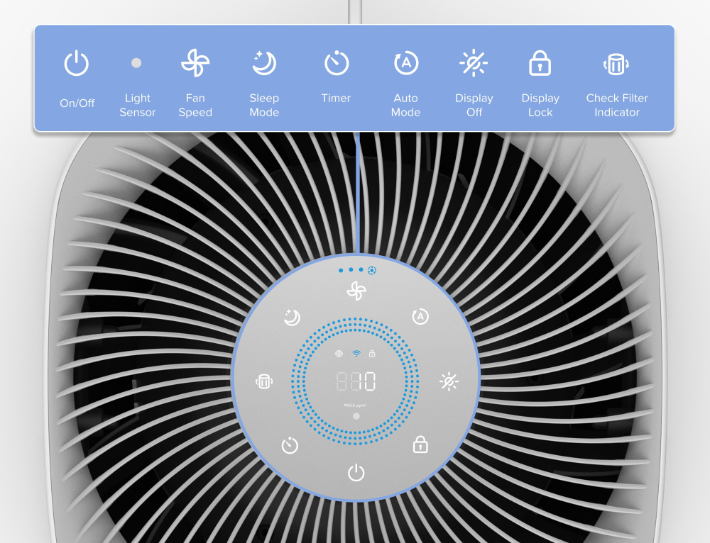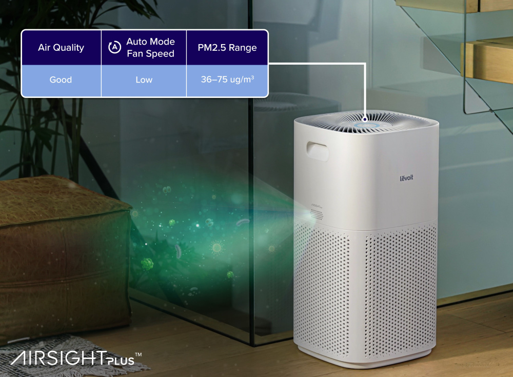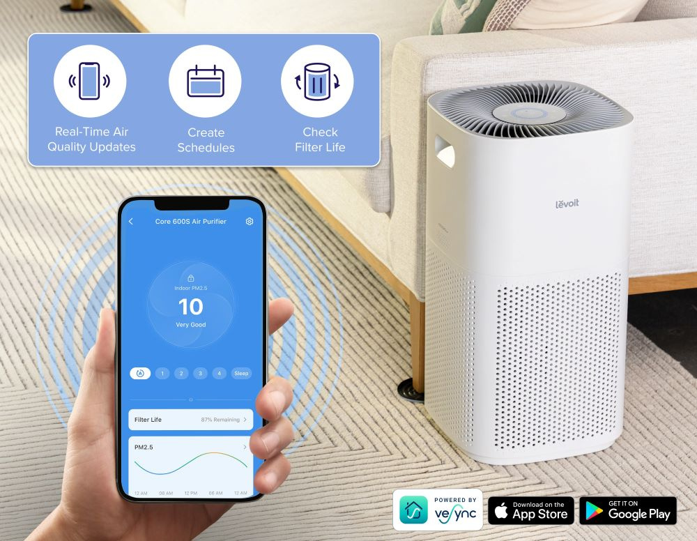 Aerul este curățat în trei straturi, începând cu un filtru exterior din nailon care captează cele mai grosiere particule, cum ar fi praful, fibrele, părul sau particulele de păr. Al doilea strat este un filtru HEPA cu formula ARC™, care diferențiază Levoit de concurență cu o calitate și fiabilitate mult mai ridicate. Particulele fine de praf, mucegaiul, bacteriile, polenul, particulele de fum, acarienii și părul sunt filtrate aici. Ultimul filtru de carbon de înaltă eficiență filtrează fumul, mirosurile, vaporii și alte particule minuscule. Sistemul captează până la 99,97% din toți contaminanții cu dimensiuni de până la 0,1 microni și este certificat pentru persoanele care suferă de alergii și astm. Puteți monitoriza starea de uzură a filtrului direct în aplicație prin intermediul smartphone-ului sau tabletei.