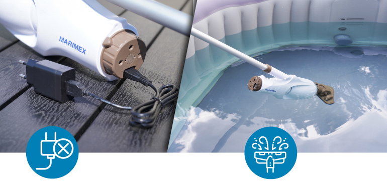 Aspiratorul pentru jacuzzi și piscine Marimex SpaVac Columbia set oferă flexibilitate ridicată și confort în timpul curățării piscinei. Funcționarea acestuia este asigurată de o baterie litiu reîncărcabilă, cunoscută pentru durabilitate și fiabilitate. La o singură încărcare, acest aspirator performant poate funcționa până la 40 de minute – timp suficient pentru o curățare temeinică a piscinei. Încărcarea ulterioară este simplă și eficientă, durând aproximativ 4,5 până la 6 ore, perioadă în care bateria se încarcă complet, iar aspiratorul este din nou gata de utilizare. Nivelul de încărcare este afișat printr-un indicator LED practic, care arată capacitatea rămasă a bateriei, astfel încât să nu fiți niciodată luați prin surprindere de o baterie descărcată.