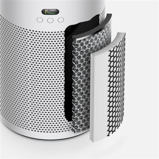 Ce intră rămâne înăuntru. Purificatoarele de aer Dyson sunt complet sigilate, astfel încât nu eliberează poluanții prinși înapoi în spațiu. filtrul HEPA electrostatic 360° captează 99,97% din particulele de până la 0,3 micrometri, inclusiv alergenii, și își menține performanțele ridicate timp de până la 5 ani. filtrul de carbon activ 360° elimină mirosurile de animale de companie, de gătit și gazele nocive precum NO₂. Datorită suprafeței sale poroase, acesta absoarbe eficient mirosurile neplăcute și poluanții.