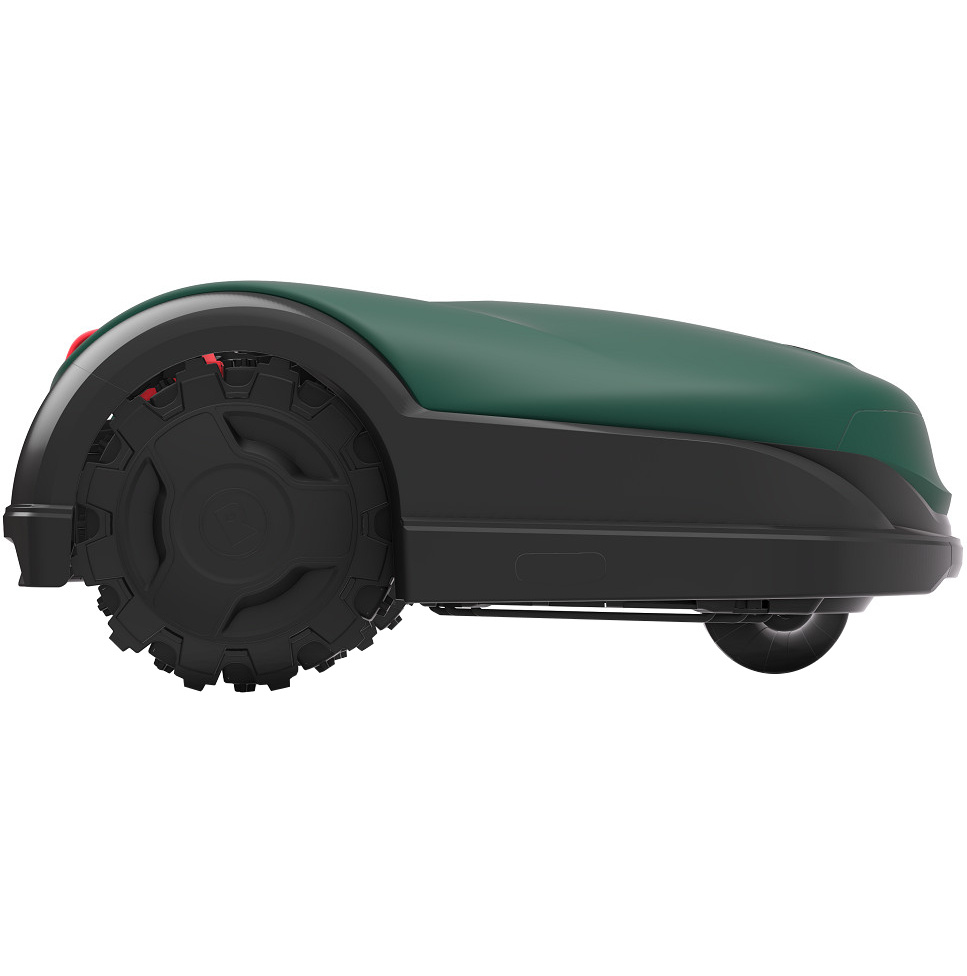 Această mașină robot de tuns iarba este alimentată de o pereche de motoare independente, puternice, fără carbon, care au fost atent selectate și testate riguros pentru o durată lungă de viață. Motoarele sunt echipate cu cutii de viteze special concepute pentru munca grea pe terenuri accidentate. Totul este completat de roți brevetate, care au fost proiectate pentru a se deplasa cât mai bine pe terenurile cu iarbă și pentru a asigura o anumită mișcare a mașinii robot pe suprafețe inegale. Ca set, este foarte puternic, ceea ce este confirmat de faptul că mașina robot poate face față pantelor de până la 45% .