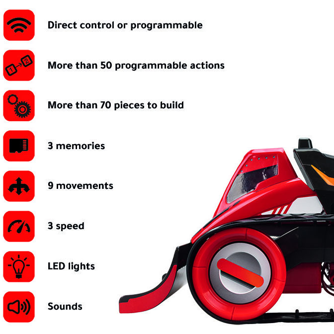 Odată ce robotul și controlerul sunt asamblate, începe adevărata distracție. Puteți controla RoboTruck în 9 direcții, programa două moduri, aprinde luminile sau folosi efecte sonore. Puteți programa mai mult de 50 de acțiuni.
