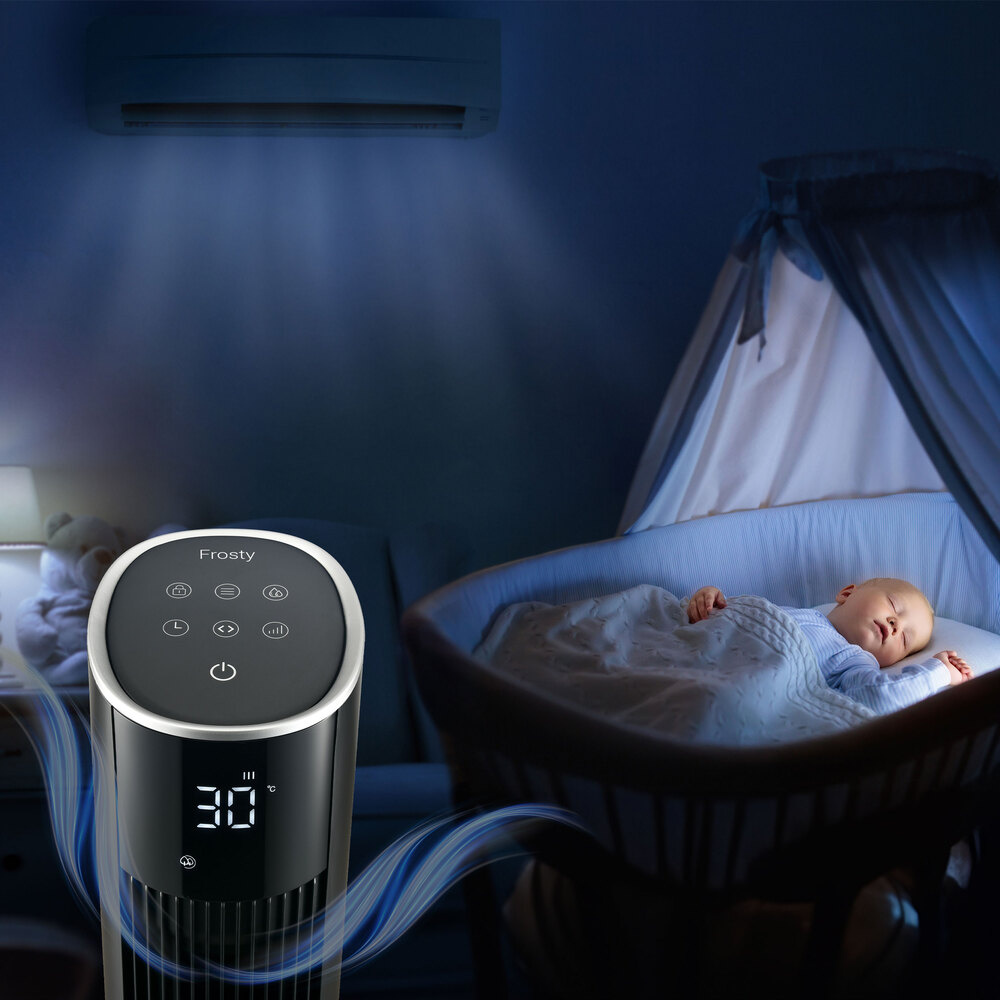 Elegantul răcitor de aer Rohnson R-8803 de culoare neagră oferă patru funcții într-un singur dispozitiv - răcire, ventilație, ionizare și purificare a aerului. Cu un flux de aer puternic de 450,24 m³/h și un rezervor de apă spațios de 3 litri, acesta poate răci eficient o cameră cu până la 3-4°C. Aparatul este potrivit pentru camere de până la 45 m² și este eficient din punct de vedere energetic datorită consumului său de energie de numai 60 W.