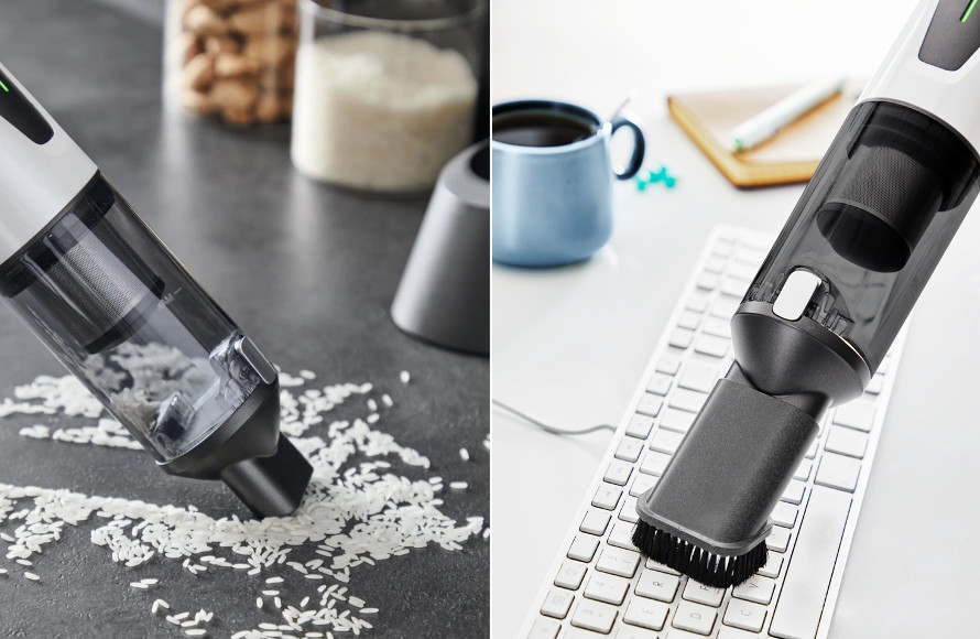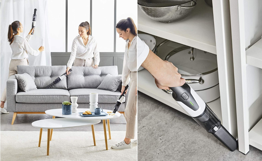 Design cilindric îmbunătățit, ultra subțire și ușor pentru o curățare ușoară cu o ergonomie mai bună. Pachetul include o perie pentru zone sensibile și o duză cu fantă.