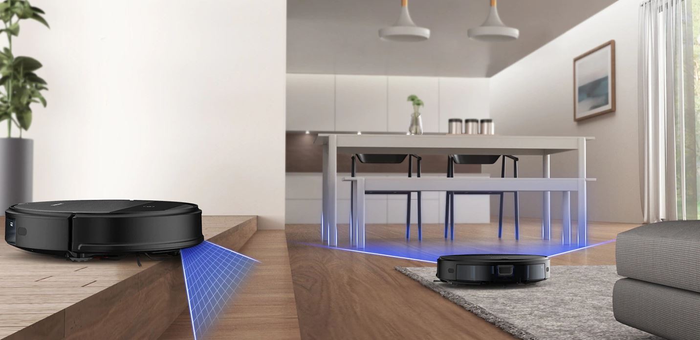 Asigurați-vă că curățarea este întotdeauna sigură. Sistemul inteligent de senzori include un senzor giroscopic care controlează mișcarea aspiratorului, în timp ce senzorul anti-coliziune reduce viteza atunci când curățați ușor colțurile. Senzorul barei de protecție vă protejează și mobilierul, iar senzorul oprește aspiratorul să nu cadă pe scări.