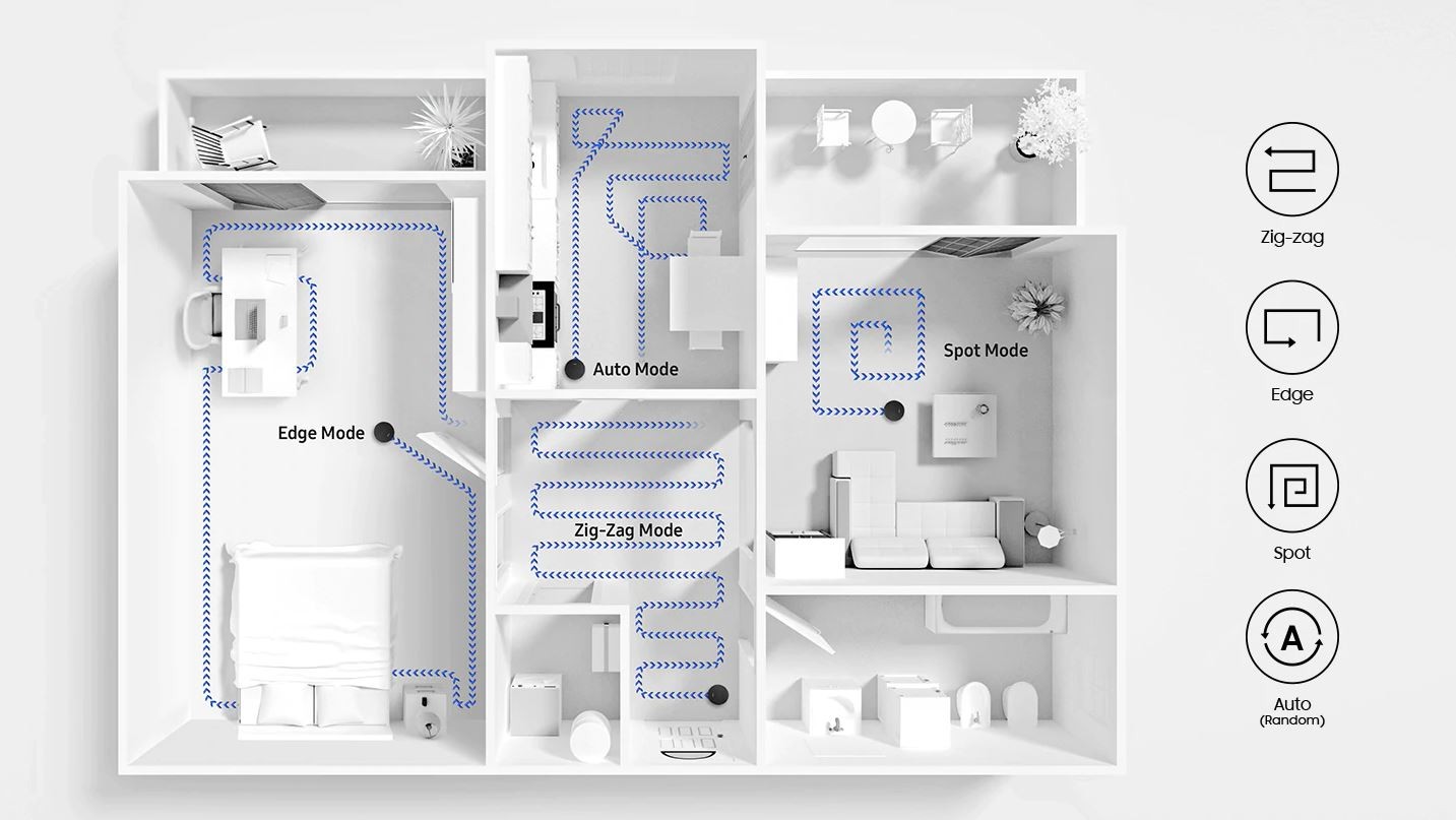 Alegeți cel mai bun mod de a curăța într-o anumită situație dintr-un număr mare de moduri de curățare . Aspiratorul are patru moduri de curățare, inclusiv modul Zig-Zag, modul Auto (Mod aleatoriu), modul Edge și modul Spot. Modul de programare vă permite, de asemenea, să setați mai multe programări, astfel încât curățarea să înceapă automat în fiecare zi la o oră selectată.