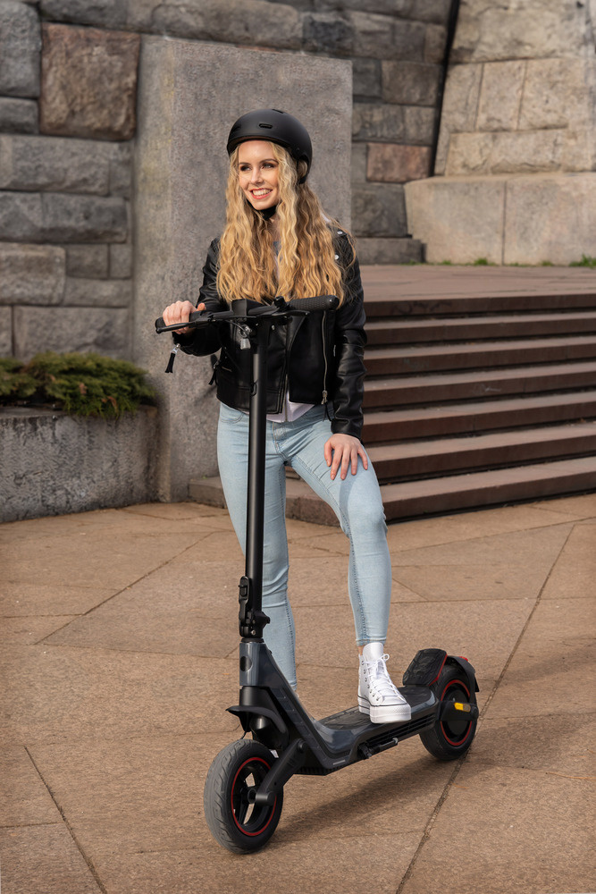 Trotineta electrică urbană este echipată cu un motor puternic de 350 W care asigură o rulare dinamică la viteze de până la 25 km/h. Acesta oferă patru moduri de rulare - SPORT (25 km/h), DRIVE (20 km/h), ECO (10 km/h) și WALK (6 km/h). Puterea sporită vă permite să urcați pante de până la 15°, ideal pentru terenurile urbane accidentate.