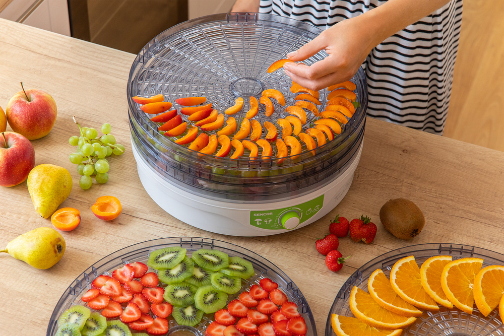 Uscătorul poate procesa o gamă largă de alimente, de la fructe și legume la ciuperci și ierburi, până la specialități din carne. Toate tăvile sunt fabricate din plastic de înaltă calitate, rezistent la căldură, pot fi spălate în mașina de spălat vase, iar designul lor special promovează un flux de aer uniform pentru rezultate optime de uscare.
