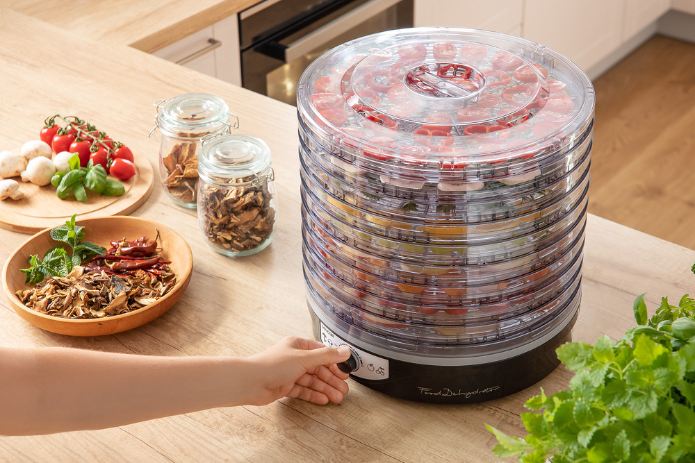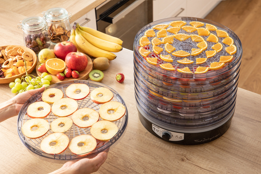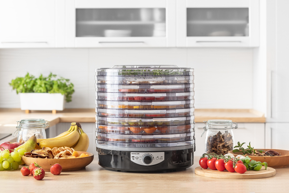 Uscătorul poate procesa o gamă largă de alimente, de la fructe și legume la ciuperci și ierburi, până la carne uscată. Toate tăvile sunt fabricate din plastic rezistent la căldură de înaltă calitate, pot fi spălate în mașina de spălat vase, iar designul lor special promovează un flux de aer uniform pentru rezultate optime de uscare.