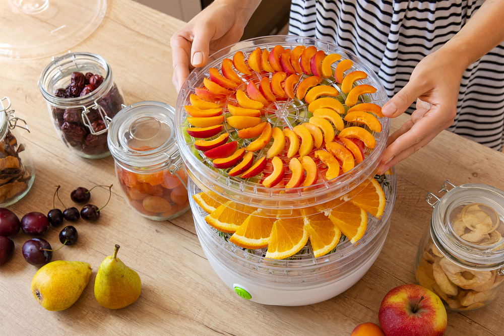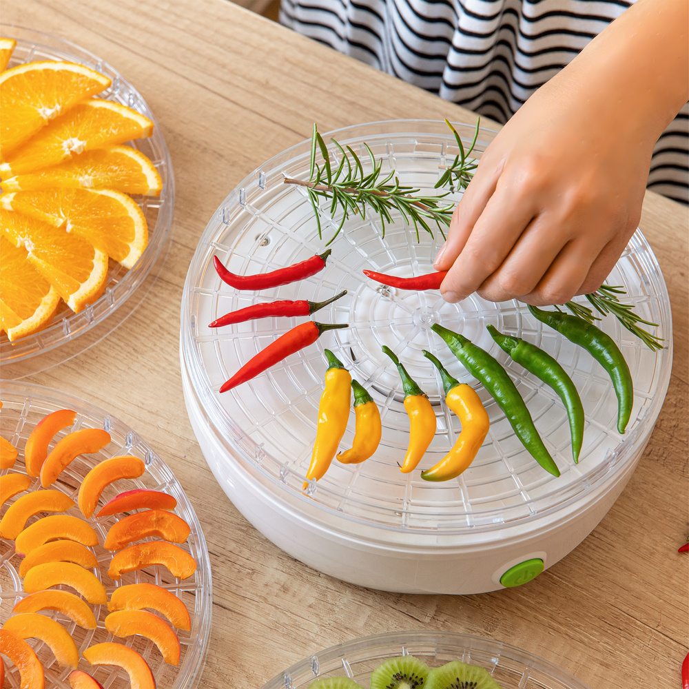 Uscătorul poate procesa o mare varietate de alimente - de la fructe (legume crucifere, prune, caise) la legume, ciuperci și ierburi, până la prepararea cărnii și a peștelui uscate. De asemenea, este potrivit pentru uscarea semințelor de dovleac sau pentru prepararea amestecurilor parfumate din petale de flori. Designul transparent al platoului și al capacului permite controlul continuu al procesului de uscare, fără a fi nevoie de manipulare.