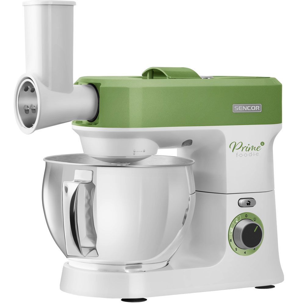 Robotul de bucătărie Sencor include, de asemenea, 4 atașamente din oțel inoxidabil pentru răzuire fină/razătoare, răzuire grosieră/razătoare și o răzătoare pentru brânză tare și nuci.